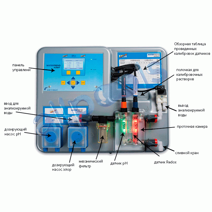 - 2 дозирующих насоса (макс. 10 л/ч) с моторами с регулируемым числом оборотов