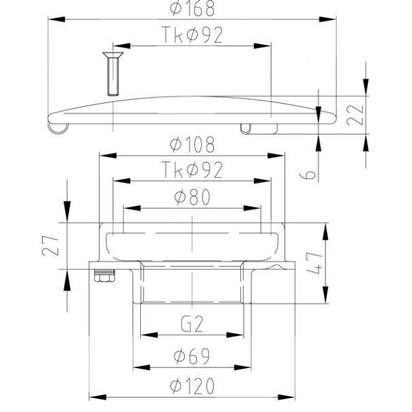 Модель Донный слив 2″ вн.р. с прямым выходом и антивихревой крышкой ø 168 мм, бронза/нерж.сталь