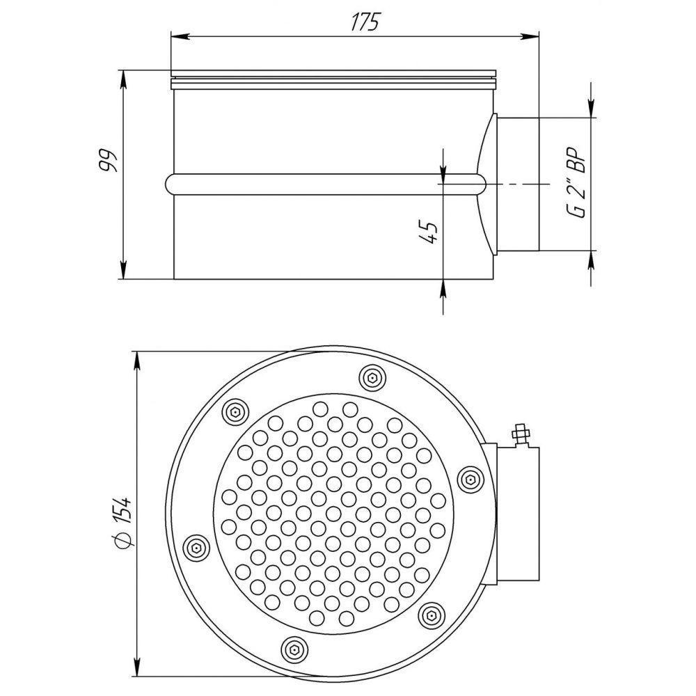 Донный слив Д 154, ⌀154 мм, пленка, 15 м³/ч, нерж. сталь AISI 304