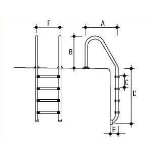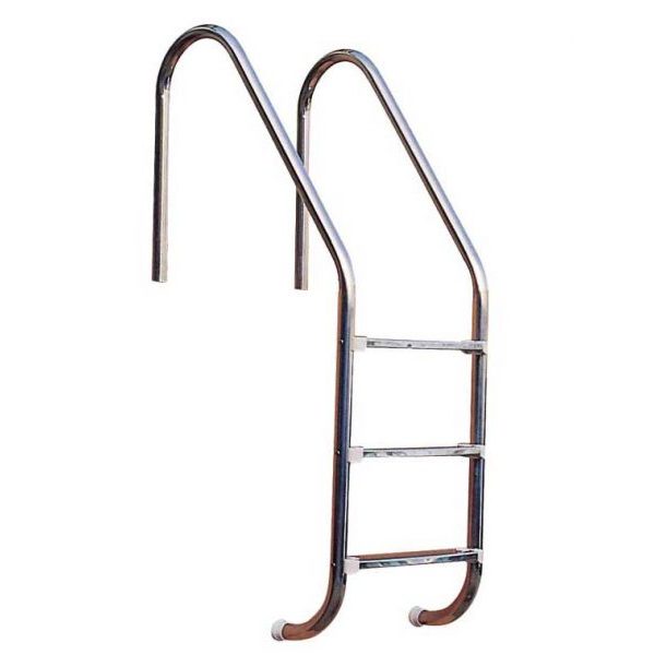 Лестница из полированной нержавеющей стали AISI 304 с противоскользящими ступеньками, диаметр трубы 42 мм. В комплекте с крепежной фурнитурой из пластика.