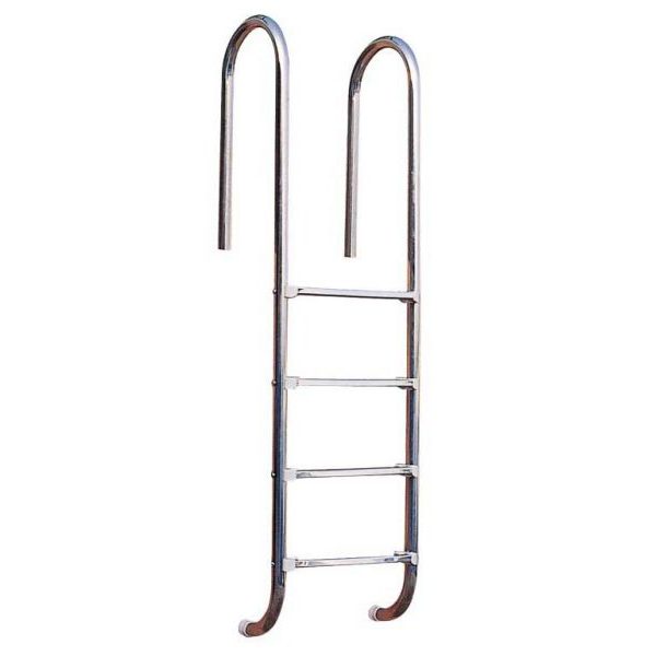 Лестница из полированной нержавеющей стали AISI 304 с противоскользящими ступеньками, диаметр трубы 42 мм. В комплекте с крепежной фурнитурой из пластика.