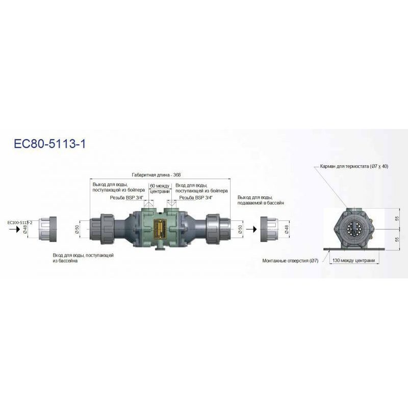 Композитные торцевые крышки с соединениями для приварки, которые подходят для присоединения теплообменников серии 5113 и 5114 к трубам бассейна