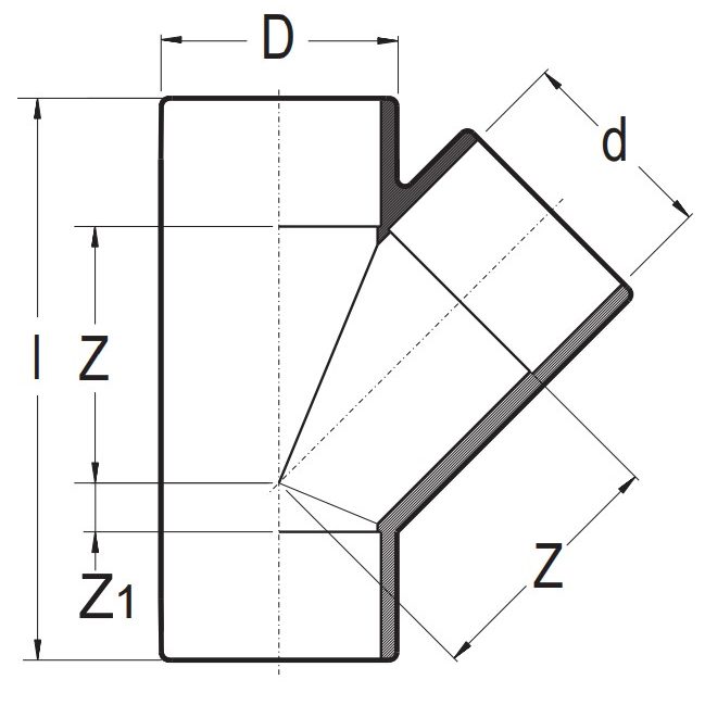 Модель Тройник 45° ПВХ Plimat